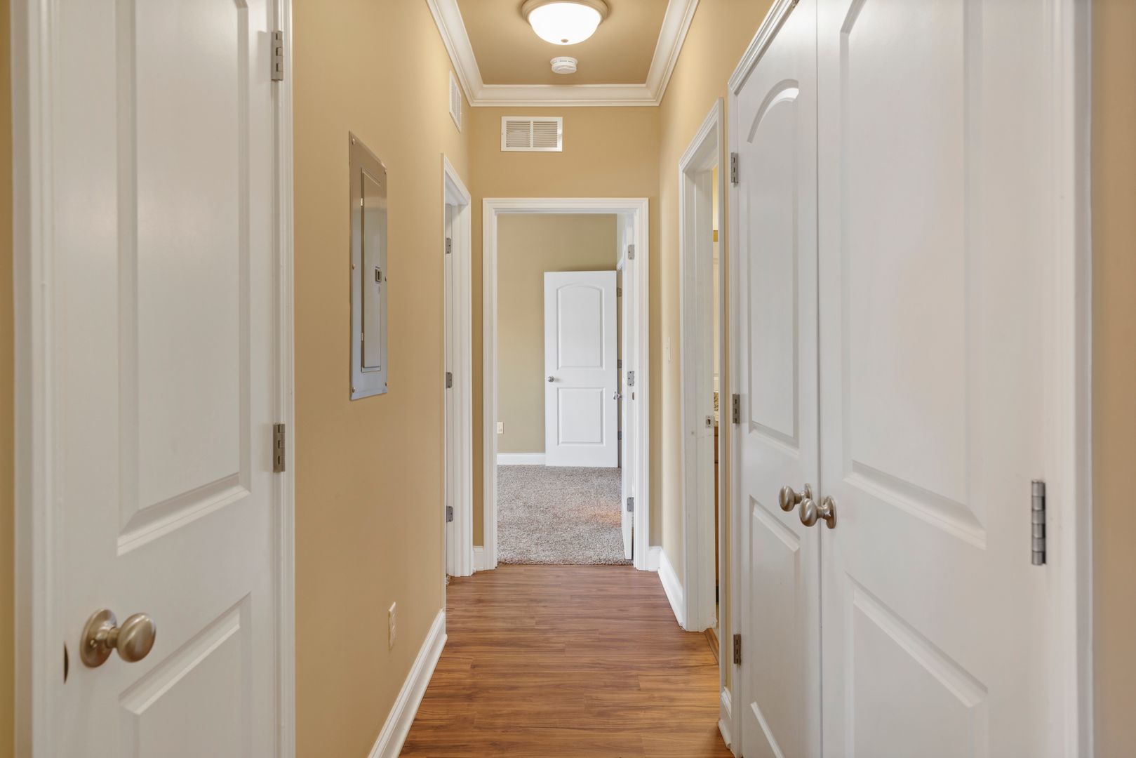 Hardwood Laminate in Common Areas with Carpeted Bedrooms